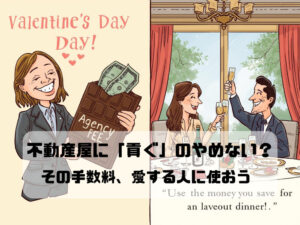 今日はバレンタインデー。「本命チョコ」やプレゼントにお金をかけるのは素敵ですが、引越しの際、不動産屋に支払う「仲介手数料(家賃1ヶ月分)」は、誰のためのプレゼントですか?もしその7万円〜10万円が浮いたら、高級ホテルのディナーも旅行も行けちゃいます。愛とお金を守る、ソコスモ流・賢いカップルの新生活術。