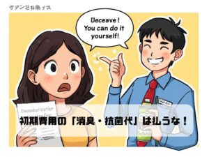【4月10日】初期費用の見積もりにある「消臭・抗菌代(約2万円)」、そのまま払っていませんか?実はその作業、市販の消臭スプレーや燻煙剤(バルサン等)を使えば1,000円台で自分でできます!不動産屋の利益高めの無駄なオプションを賢く断る方法と、入居前のDIY術をプロが徹底解説。