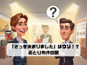 【3月24日】「その部屋、さっき決まっちゃいました」は嘘!?不動産屋に呼び出されて別の部屋を営業される悪質な「おとり物件」の被害が急増中。あなたの貴重な休日を奪うおとり物件の巧妙な手口と、来店前にウソを見抜く3つの鉄則、ソコスモの確実な空室確認(裏ワザ)を大公開します!