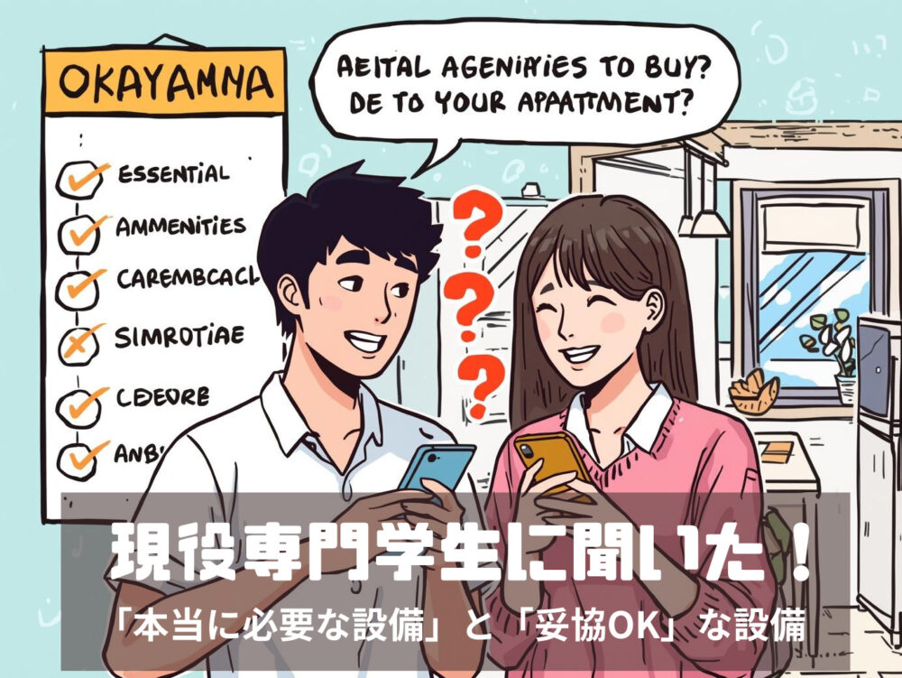 そこで今回は、実際に岡山で一人暮らしをしている専門学校の先輩たちに**「本当に必要な設備」と「なくても何とかなる(妥協OK)な設備」**について、リアルな本音を聞いてみました!