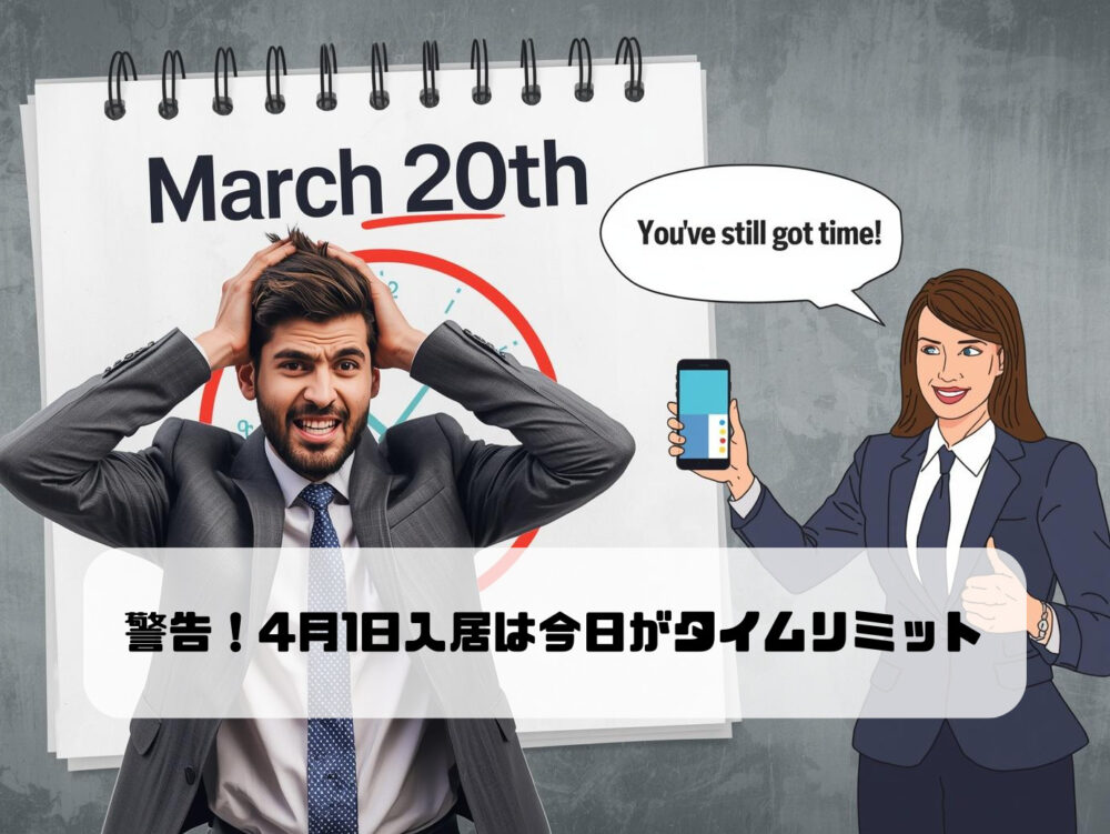 と、パニックになっていませんか? 結論から言います。通常の探し方をする場合、4月1日入居に間に合わせるには「今日(3月20日)」が事実上のタイムリミットです。