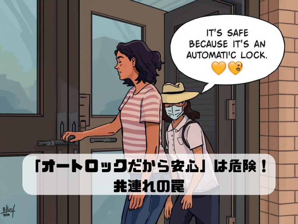 なぜオートロックが安全ではないのか? それは、住人が鍵を開けて自動ドアが開いた瞬間、後ろからスーッとついていく「共連れ(ともづれ)」という手口で、誰でも簡単に建物内に入れてしまうからです。